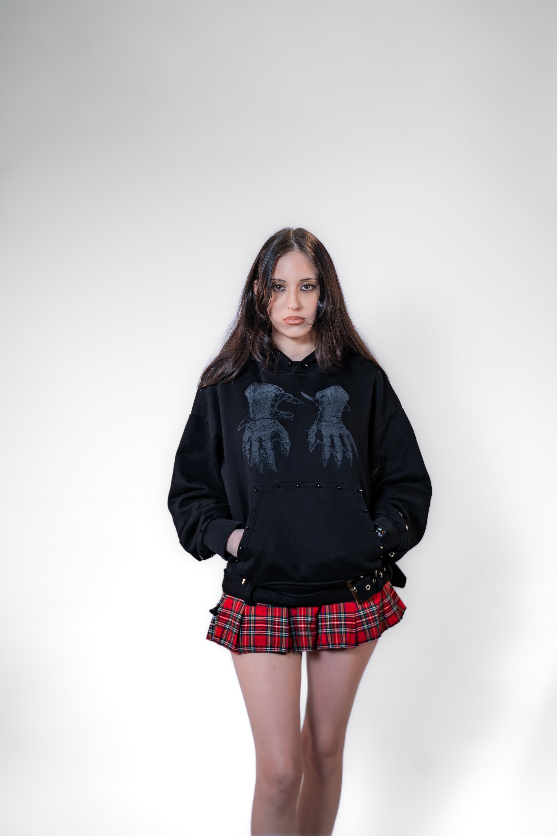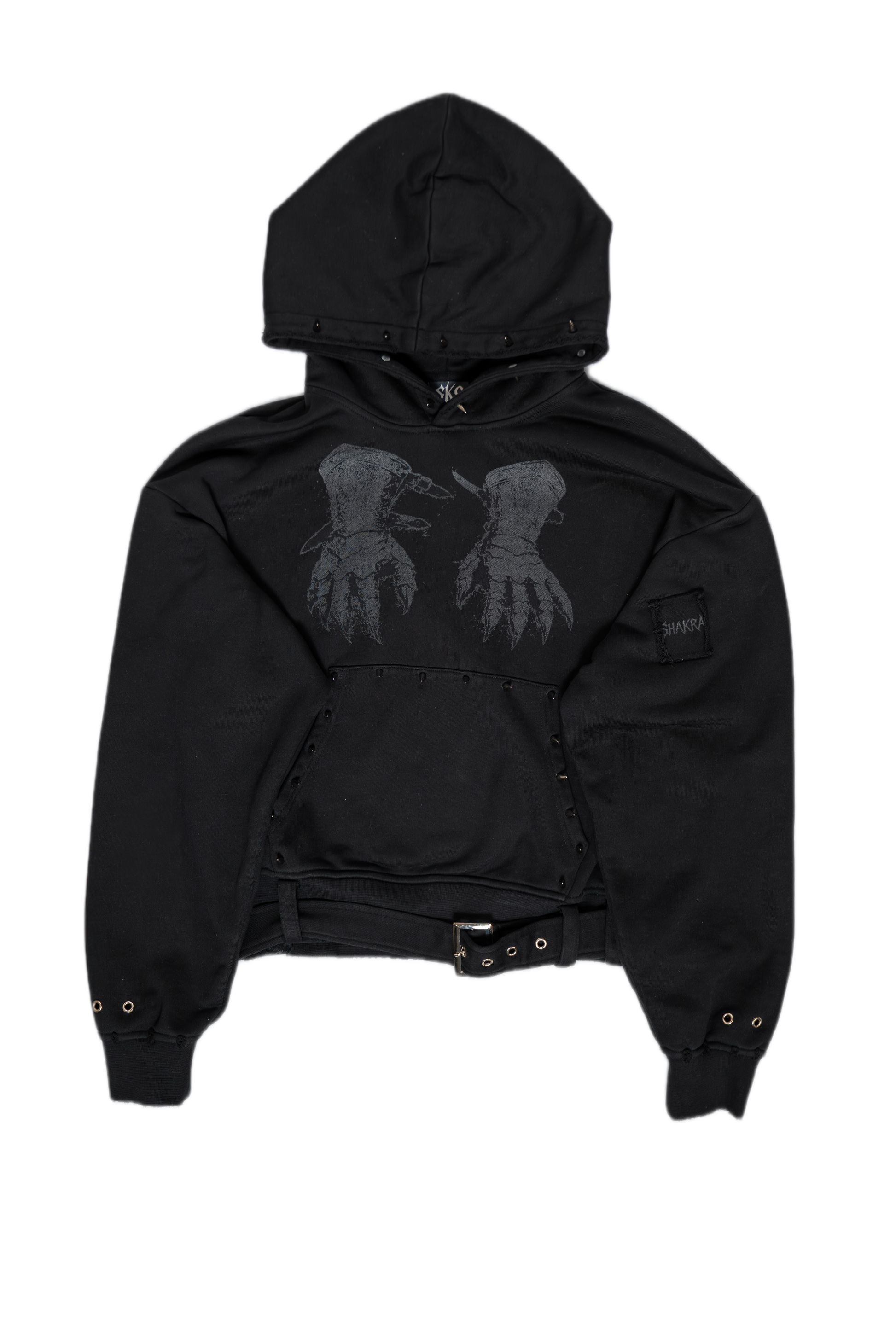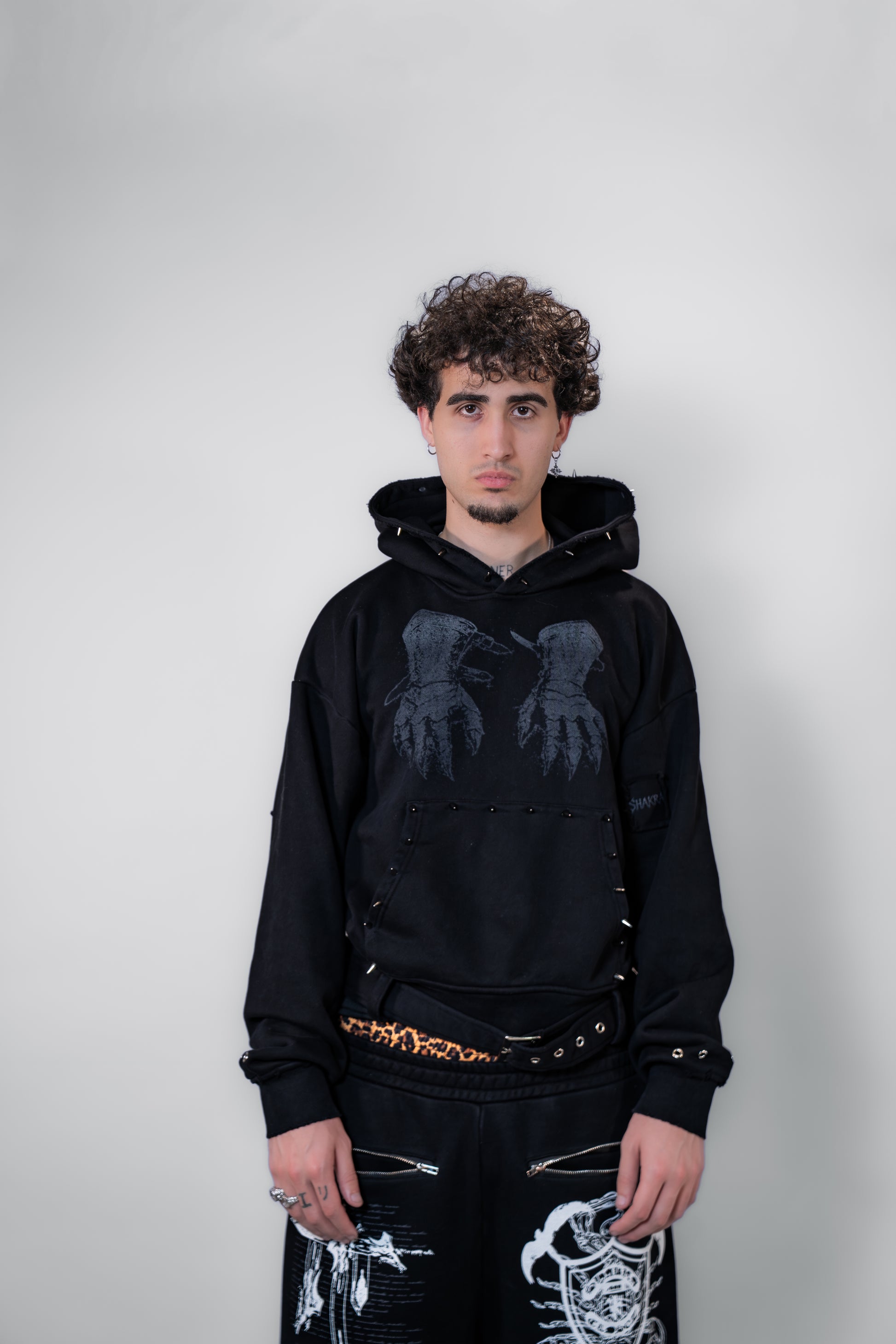 metallic spikes on pockets and hood